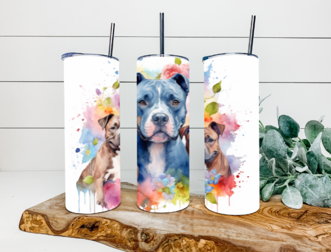 20oz Floral Staffordshire Bull Terrier Tumbler