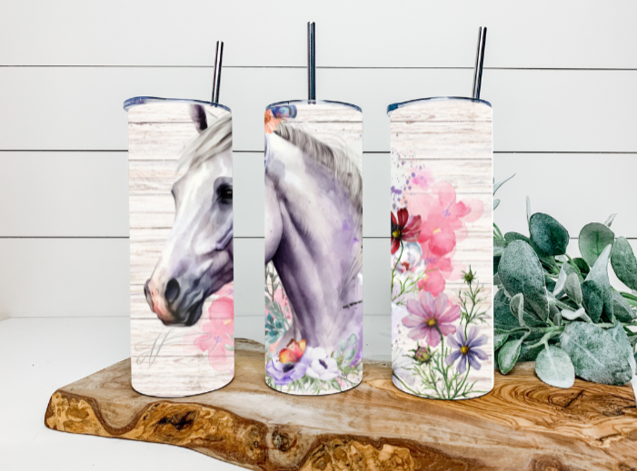 20oz Horse With Flowers Tumbler